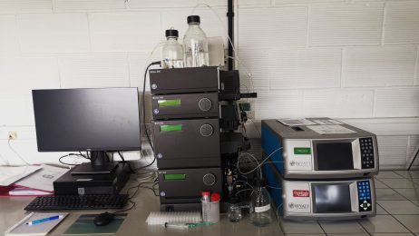 La diffusion de la lumière multi-angle ou MALS (détecteur miniDAWN TREOS II) couplée à un système FPLC (appareillage ÄKTA-purifier) est une technique d’analyse spectroscopique non destructive permettant de réaliser une mesure de la masse moléculaire des molécules éluées (protéines et éventuellement acides nucléiques), de suivre la qualité d’une purification, de mesurer la stœchiométrie de complexes macromoléculaires, de mesurer l’état d’oligomérisation, de suivre l’homogénéité de la taille de la molécule éluée, de suivre d’éventuels changements de conformation en présence d’effecteurs. Elle permet également de mettre en évidence les changements conformationnels éventuels de la molécule étudiée (outil analytique puissant pour les complexes et les protéines modulaires) et enfin d’obtenir des données structurales sur les interactions entre molécules en solution.