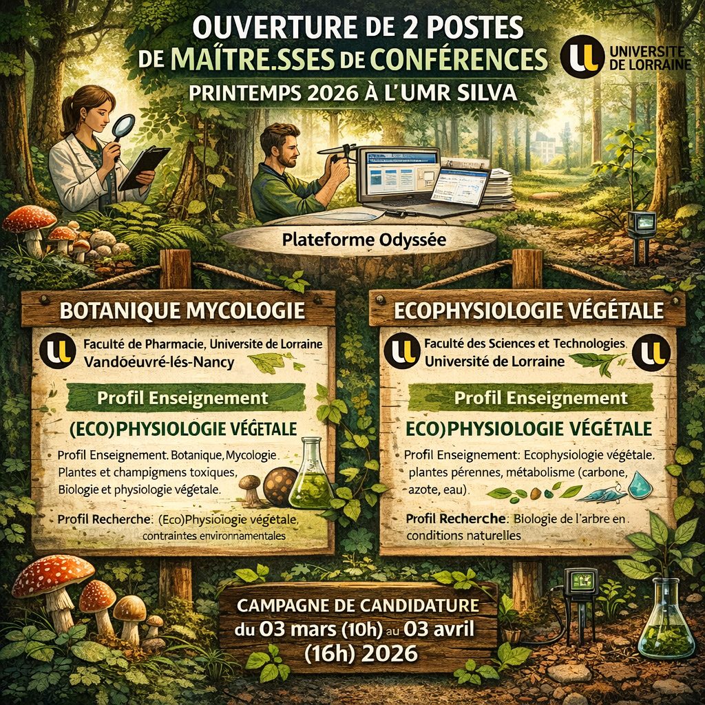 Deux postes de maître.sse de conférences vont être ouverts au concours au printemps 2026 dans l’UMR Silva