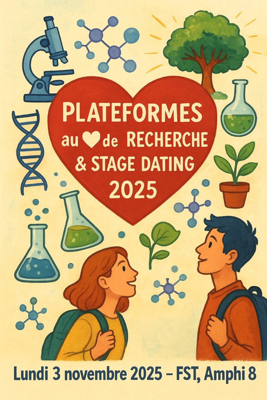 Vous êtes invités à participer aux Plateformes au ❤ de la recherche & stage dating le lundi 3 novembre 2025 à partir de 13h30 FST – Amphi 8